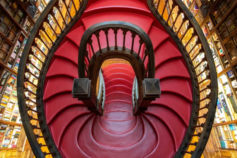 Não é difícil reconhecer o potencial da Livraria Lello como musa: um átrio de vitrais que realça a escadaria de um vermelho profundo, suficientemente espetacular para os deixar imóveis.